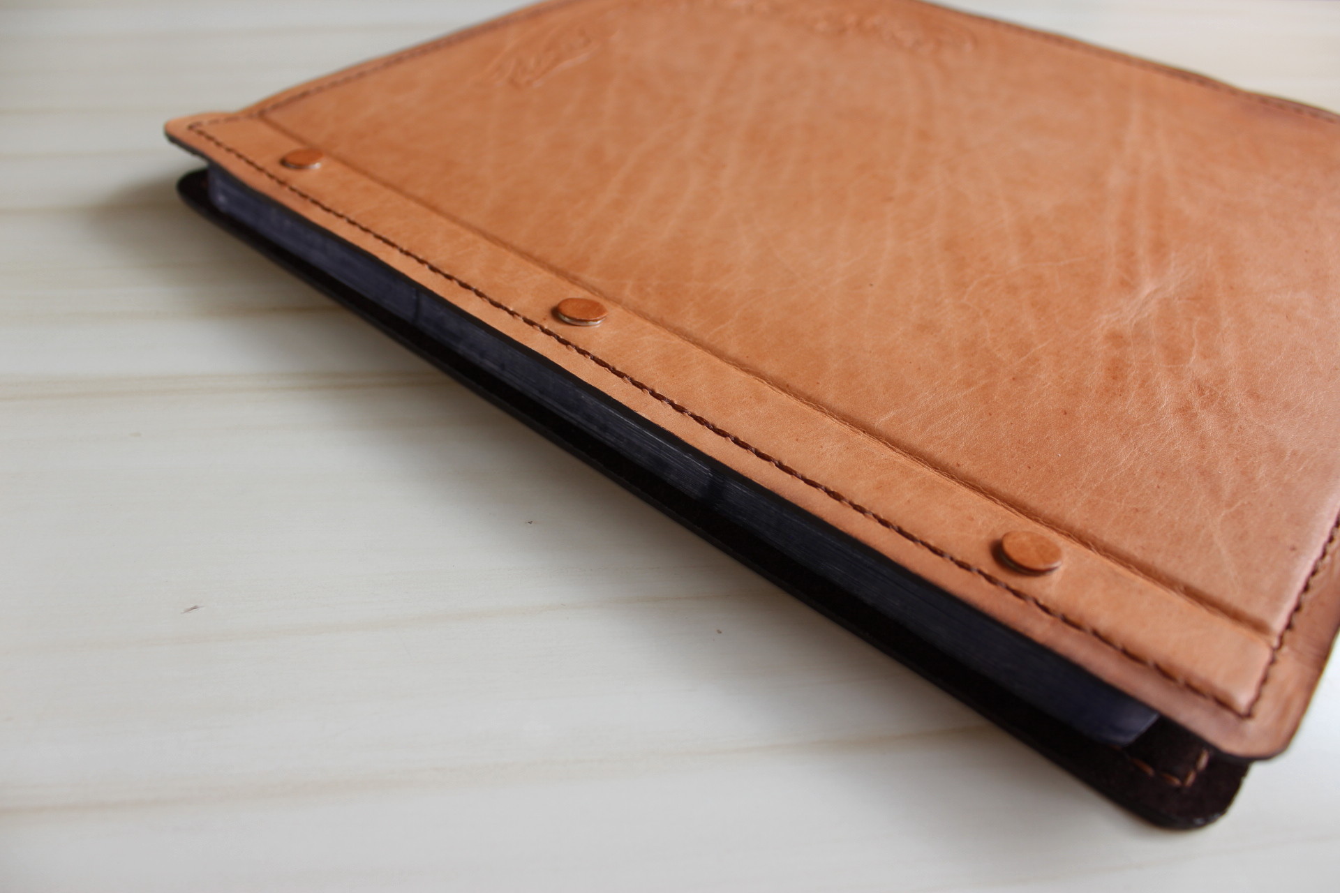 La unión de materiales y técnicas nos llevan a evocar los álbumes antiguos: El cincelado es la técnica escogida para aportar belleza y textura al objeto, dejando una huella permanente en el cuero, acompañado de un efecto envejecido, rodeado de costuras manuales en sus portadas forradas con gamuza.