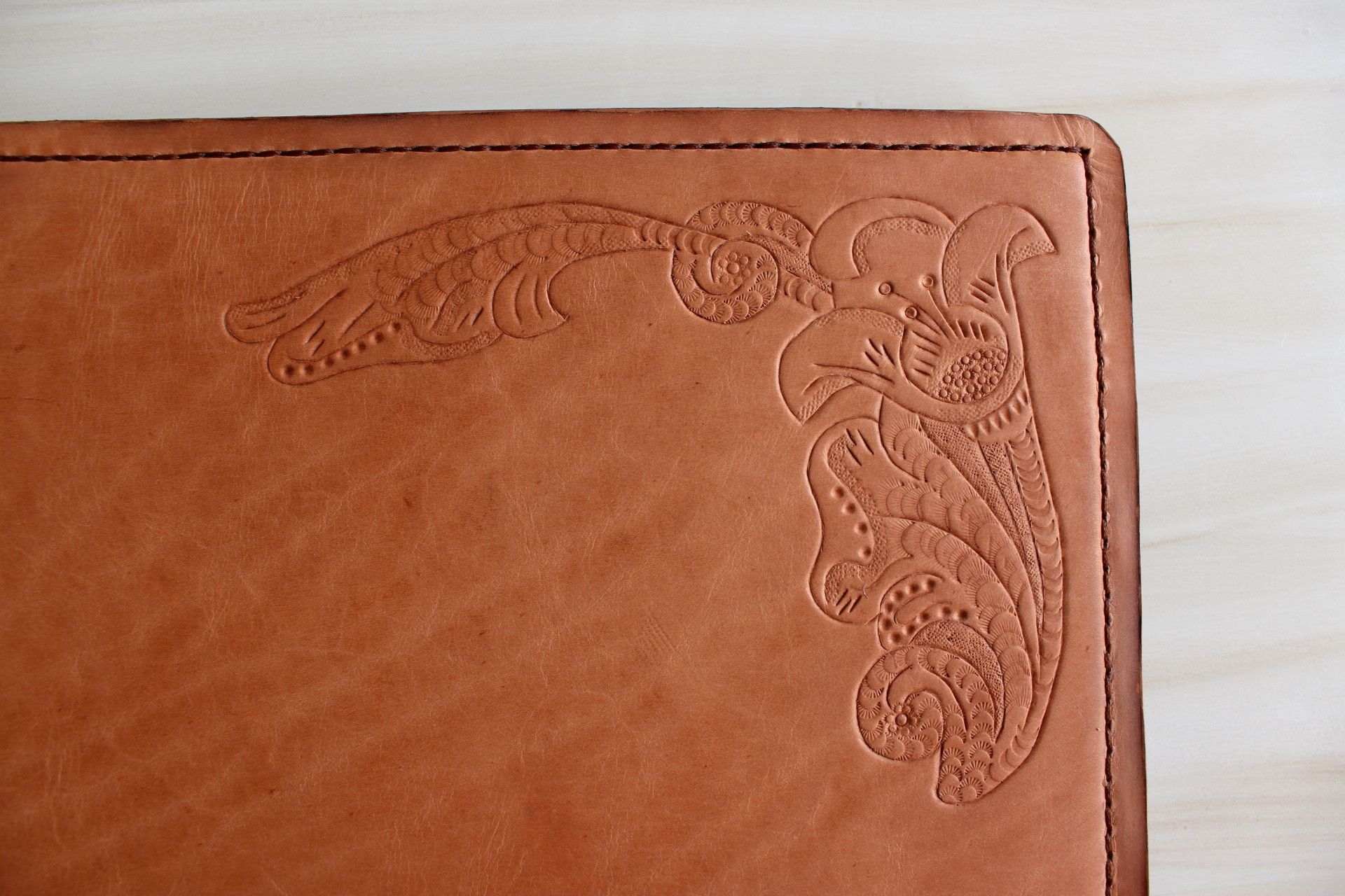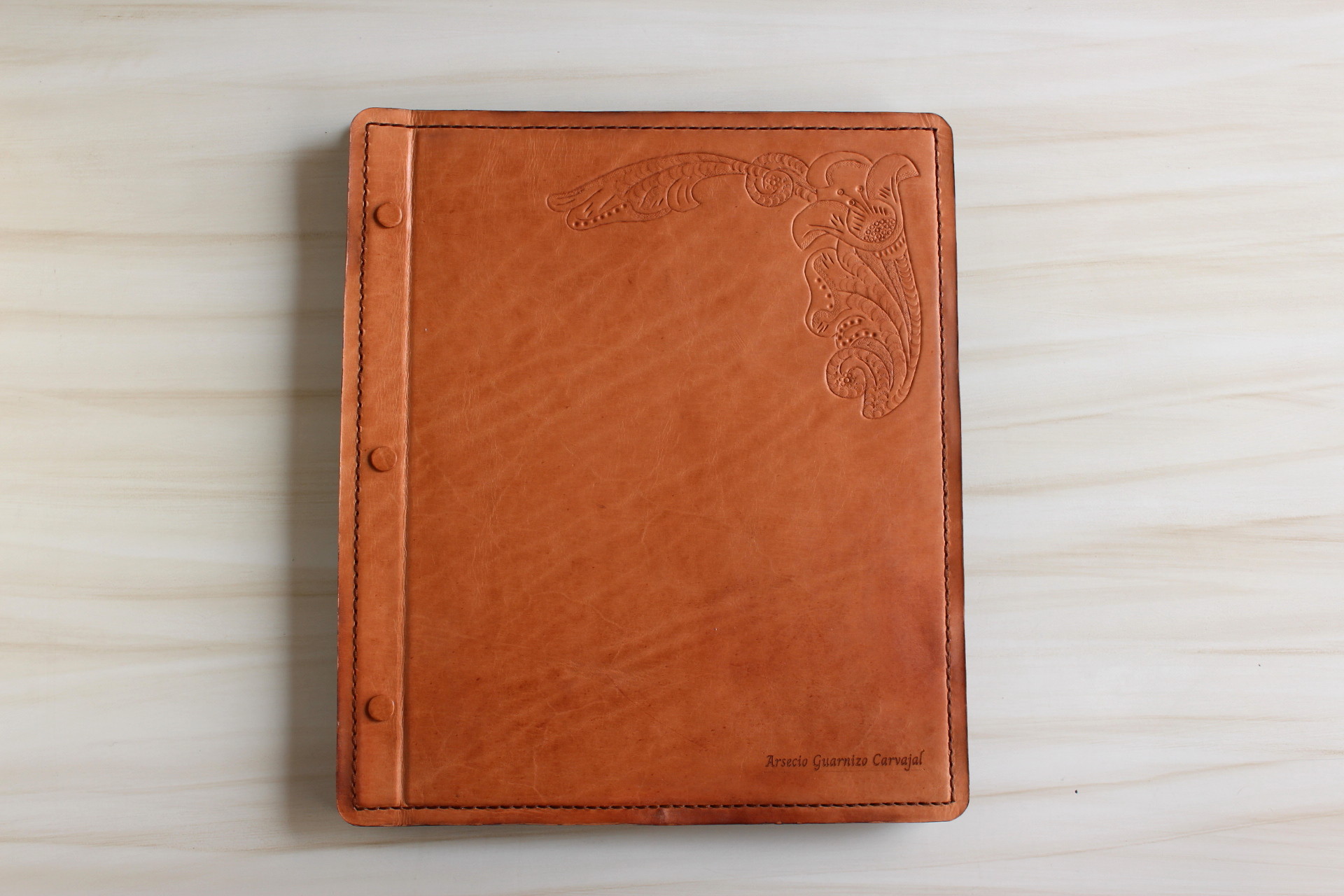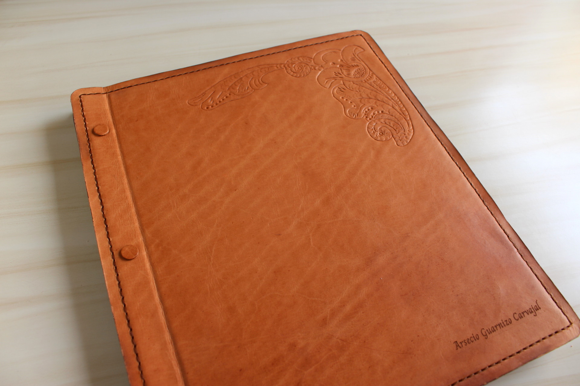 Cuero 100% natural de curtido vegetal (Posee característica de memoria para aplicar la técnica decorativa de cincelado)