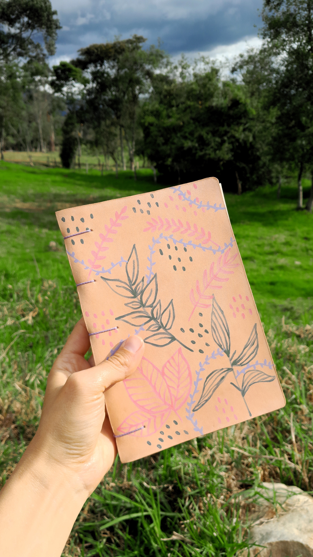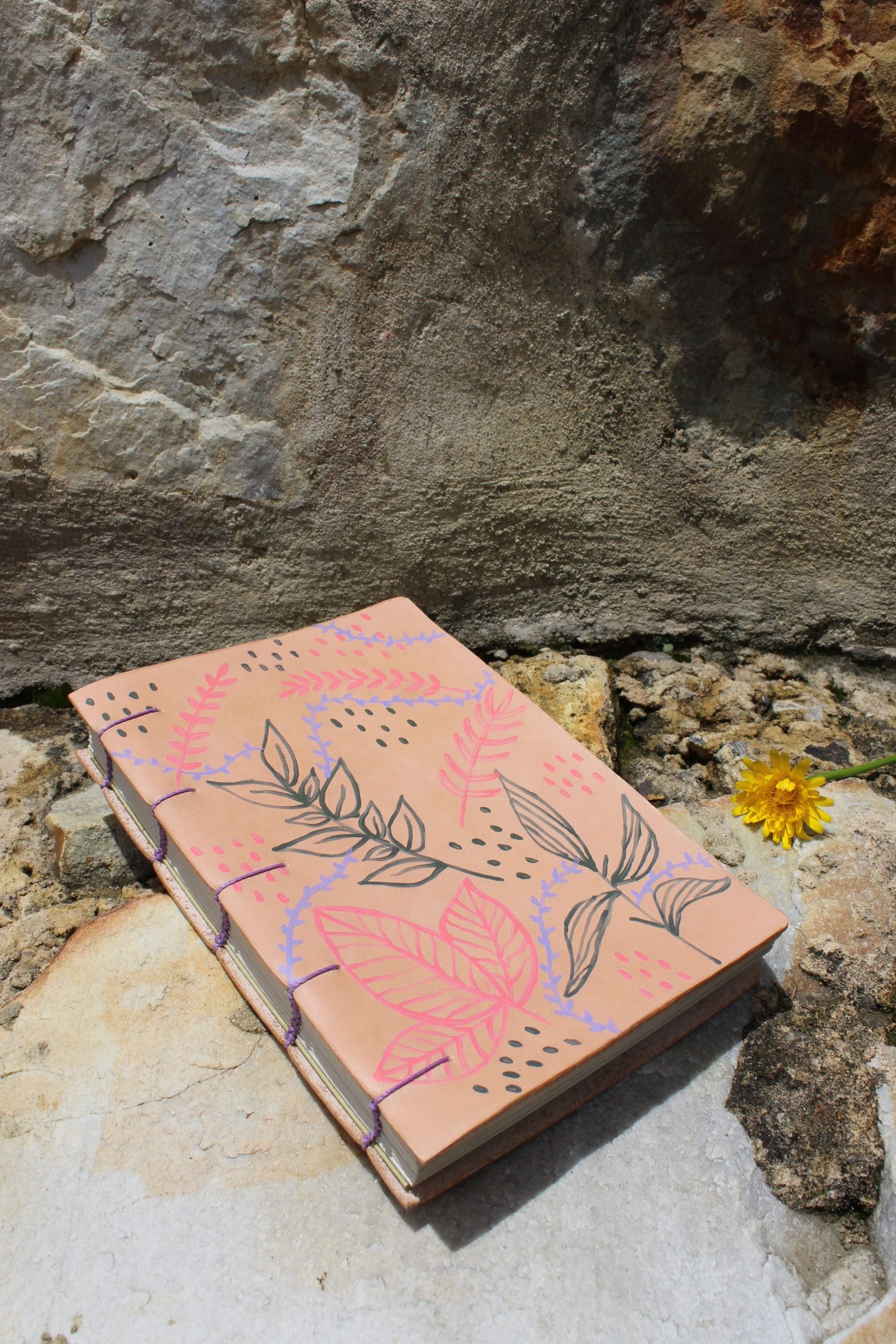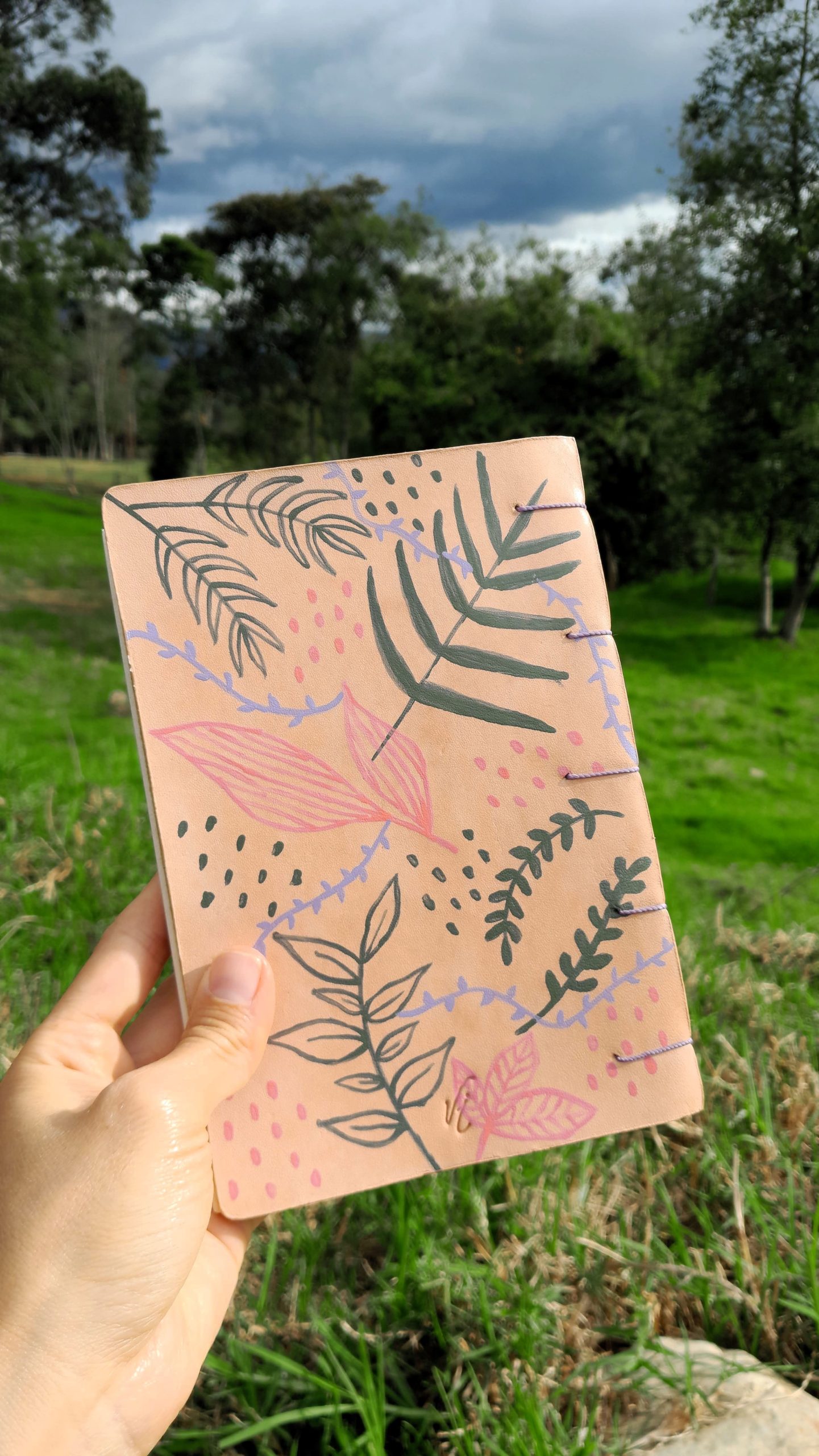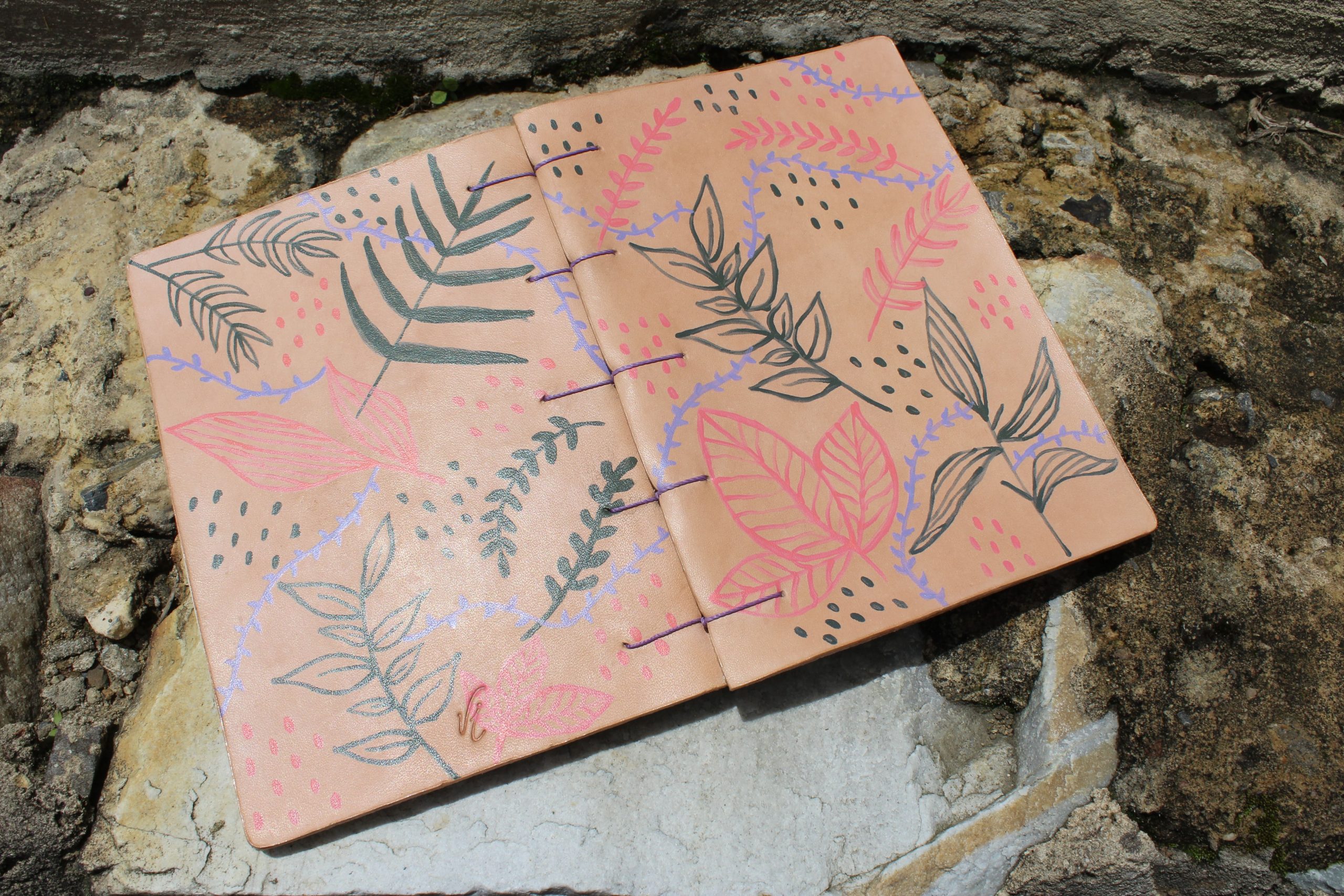 Un objeto, dos piezas de cuero, tapa y contratapa, pintadas a mano con los colores invertidos. 🧡💖🎨