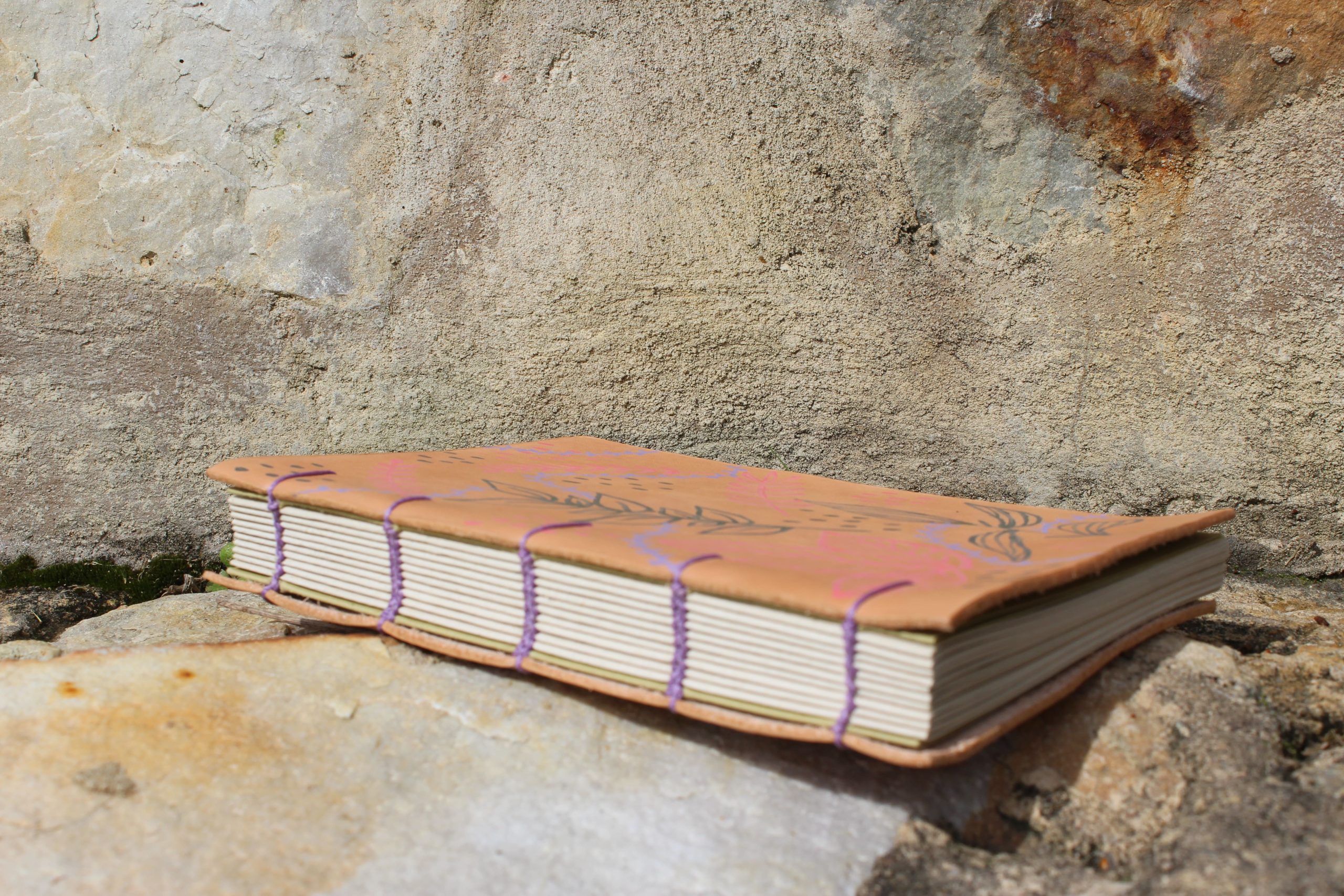 Cuero, papel, pintura e hilo, una combinación perfecta de materiales para crear una pieza única como esta bella bitácora.