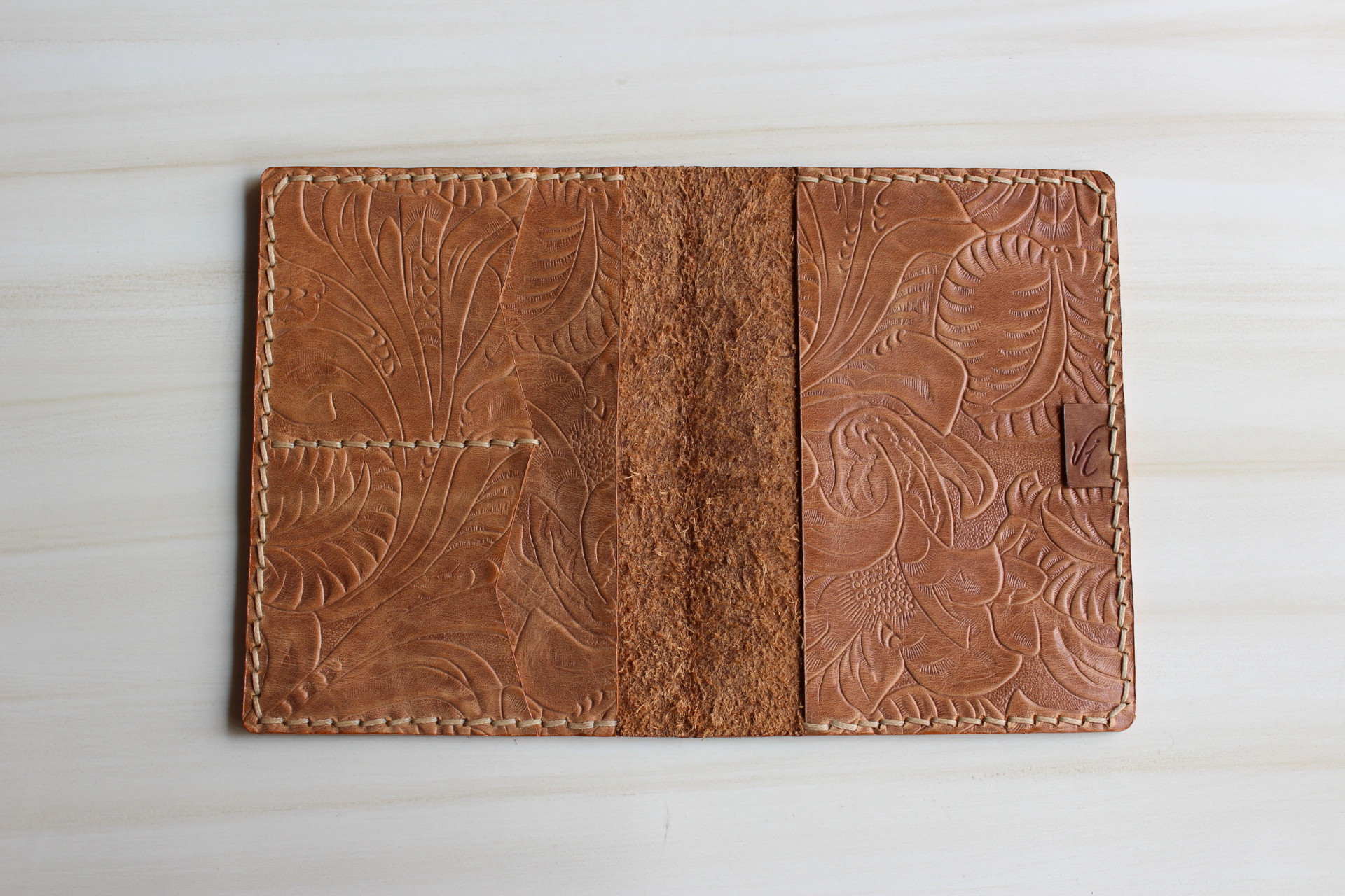 A diferencia de nuestro porta pasaporte aventura, esta pieza no tiene costuras decorativas en su portada.