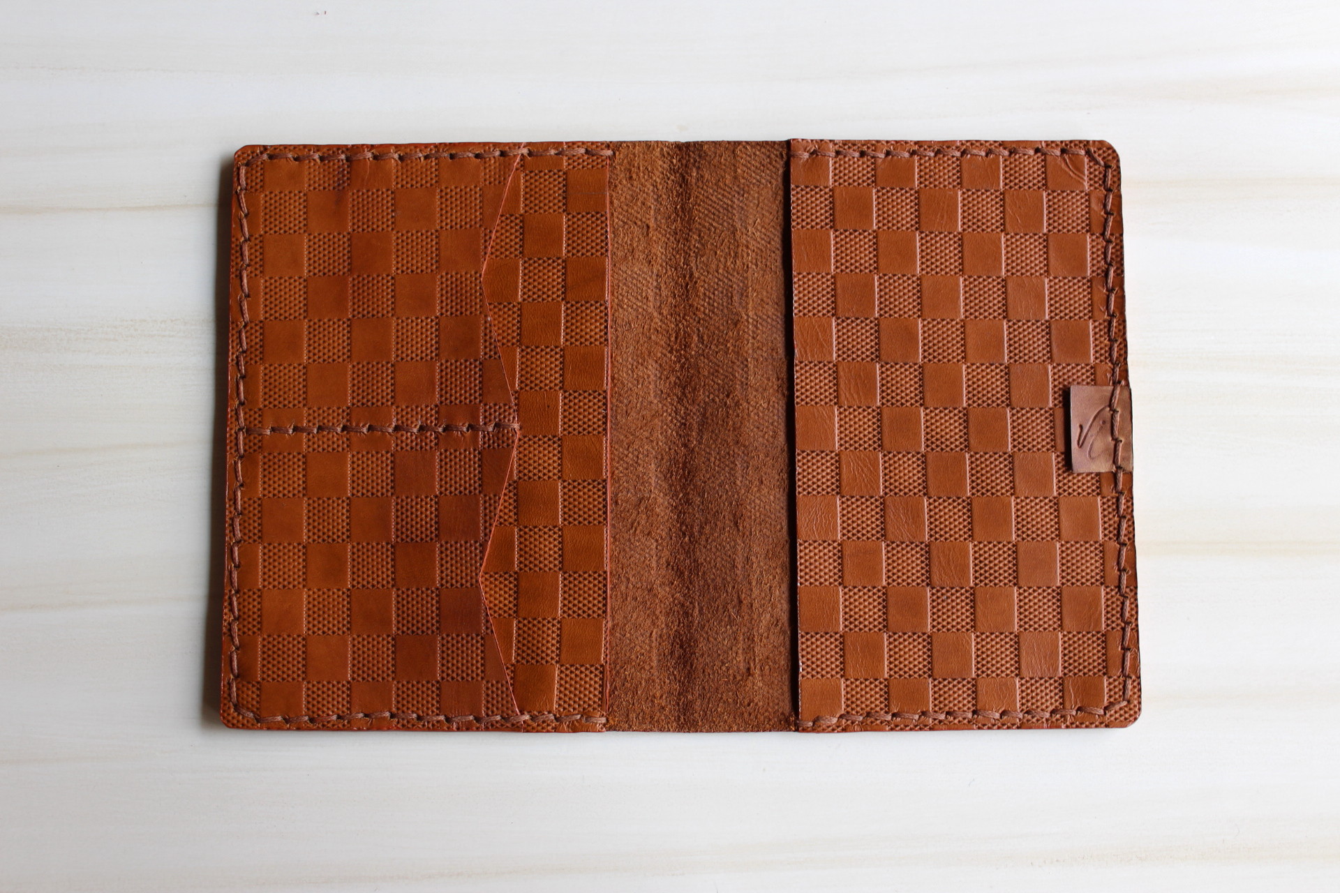 A diferencia de nuestro Porta pasaporte aventura, esta pieza no tiene costuras decorativas en su portada.