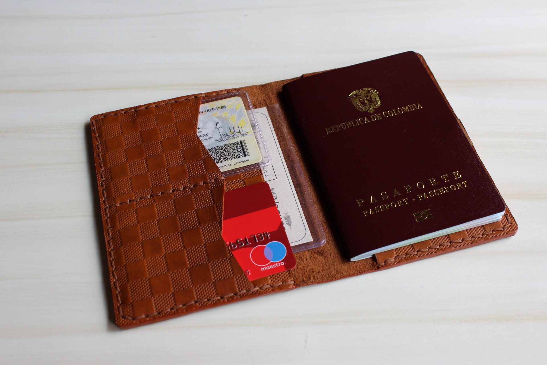 Cuenta con dos compartimentos para ubicar un pasaporte en cada uno de ellos y con dos tarjeteros donde puedes poner tu documento de identificación y tarjetas.