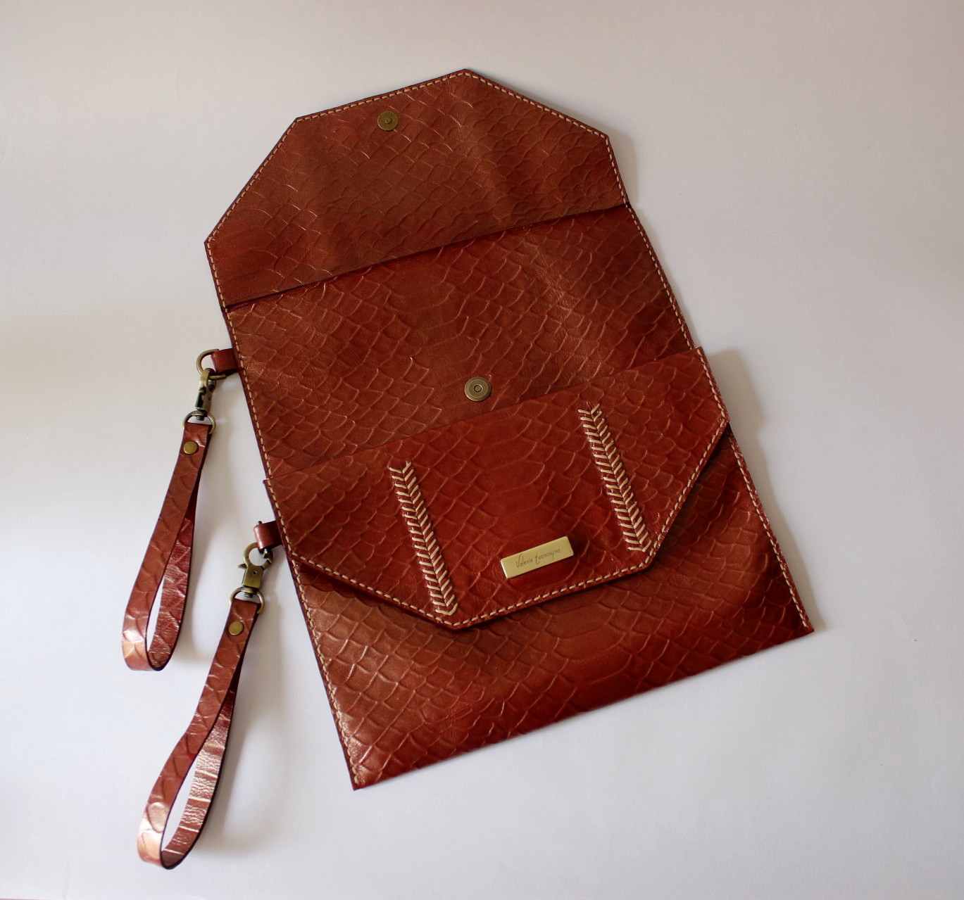 Está cosido a mano y su interior no es forrado, lo que te permite apreciar y disfrutar la naturalidad y suavidad del cuero.